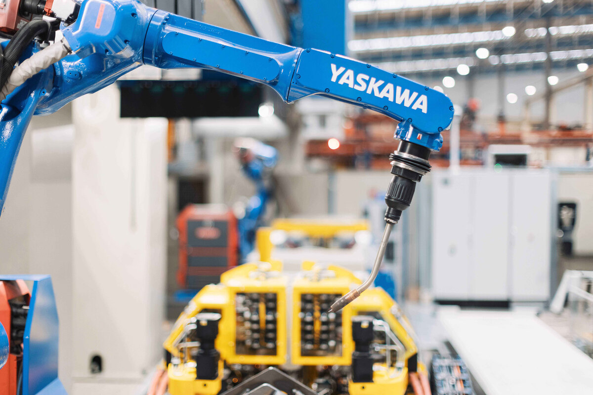 It is not only the plant concept that comes from Yaskawa. The company, which has its own production sites in Bavaria and Slovenia, also produced the welding and handling robots, including positioners, welding tables and tracks.