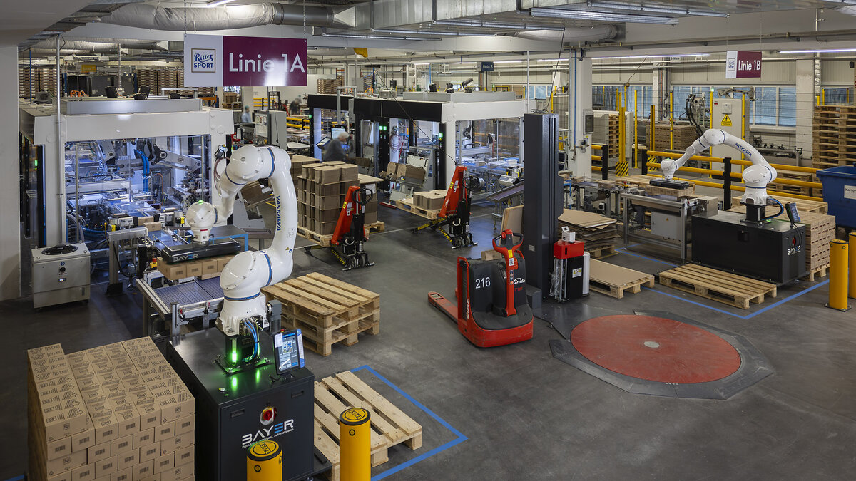 With the triumph of automation in packaging technology, the need for flexible and efficient packaging solutions – such as those developed by the manufacturer of modular palletizing systems Bayer with its safety guard-less solution PLT HC – is also increasing. Chocolate manufacturer Alfred Ritter GmbH & Co. KG now uses four such facilities at its logistics hub Reichenbach.