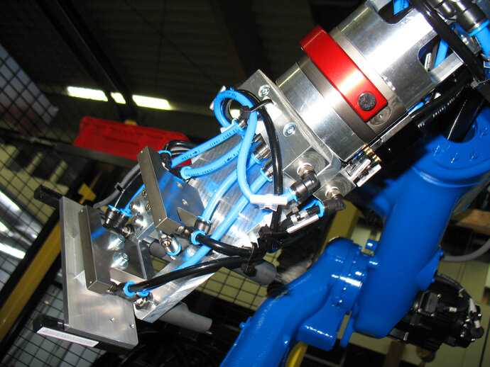 Another option is to change the entire tool. Gripper changing systems are used for this purpose, which are either operated manually by an operator or automatically. In automatic systems, the robot has all the change tools available in a magazine, a kind of gripper rack, and the robot itself fetches the right tool for the selected program.