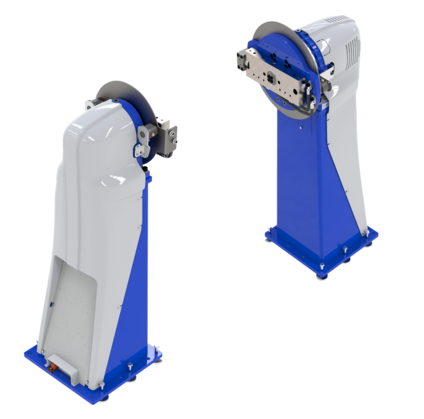 One station positioner for workpieces requiring rotation about one axis. The free standing headstock can be mounted directly on the floor at an appropriate distance from the tailstock.